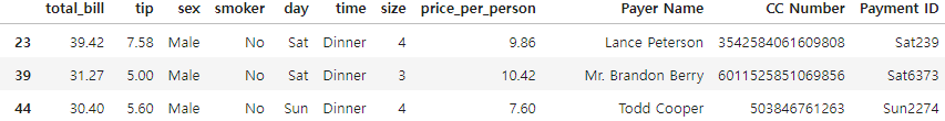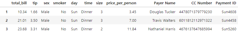 - 위의 그림과 같이 total_bill을 확인하면 30보다 큰 값들을 가져온 것을 확인 할 수 있습니다.