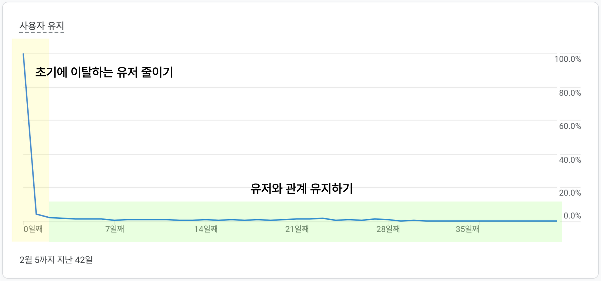2. 리텐션은 단기적인 이벤트보다는 장기적으로 꾸준히 진행하는 활동을 통해 점진적으로 개선되는 지표입니다.
