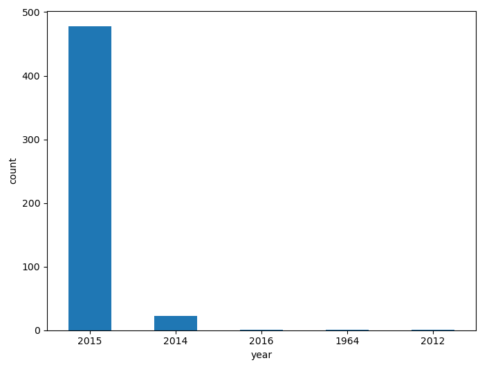 사진과 같이 2015년의 평가된 영화의 수가 압도적으로 많은 것을 확인 할 수 있습니다.