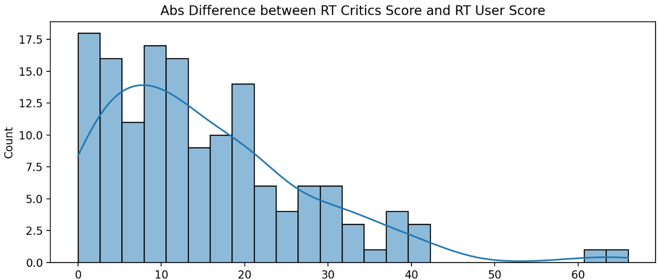 이제 Rotten Tomatoes에서 비평가와 사용자 간의 절대값 차이를 이용하여 그래프를 그려 좀 더 명확하게 확인 해보겠습니다.