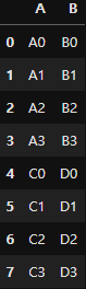 data_one = {'A':['A0', 'A1', 'A2', 'A3'], 'B':['B0', 'B1', 'B2', 'B3']}