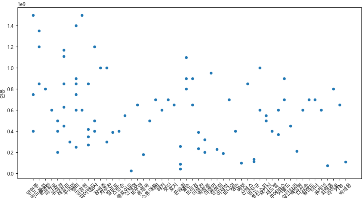 그리고 최종적으로 연봉 예측을 하였지만, 연도마다 최동원 선수의 연봉들이 모두 같게 나온 문제가 발생되어 이 문제는 좀더 생각해보고 다시 해당 문제를 해결해야 할 듯 싶습니다.